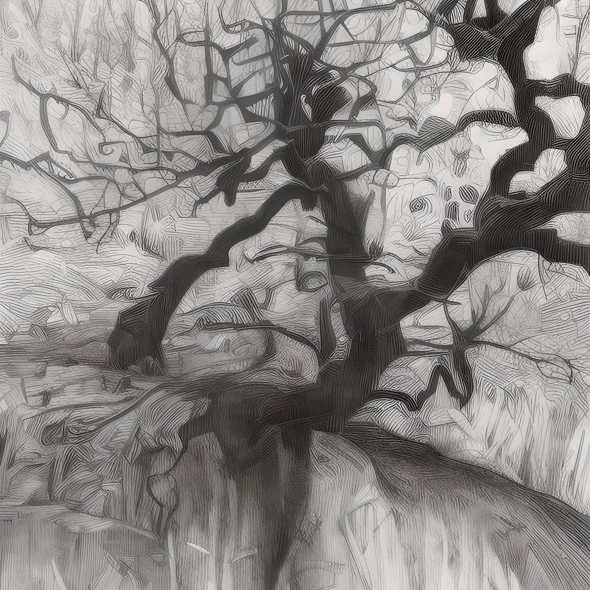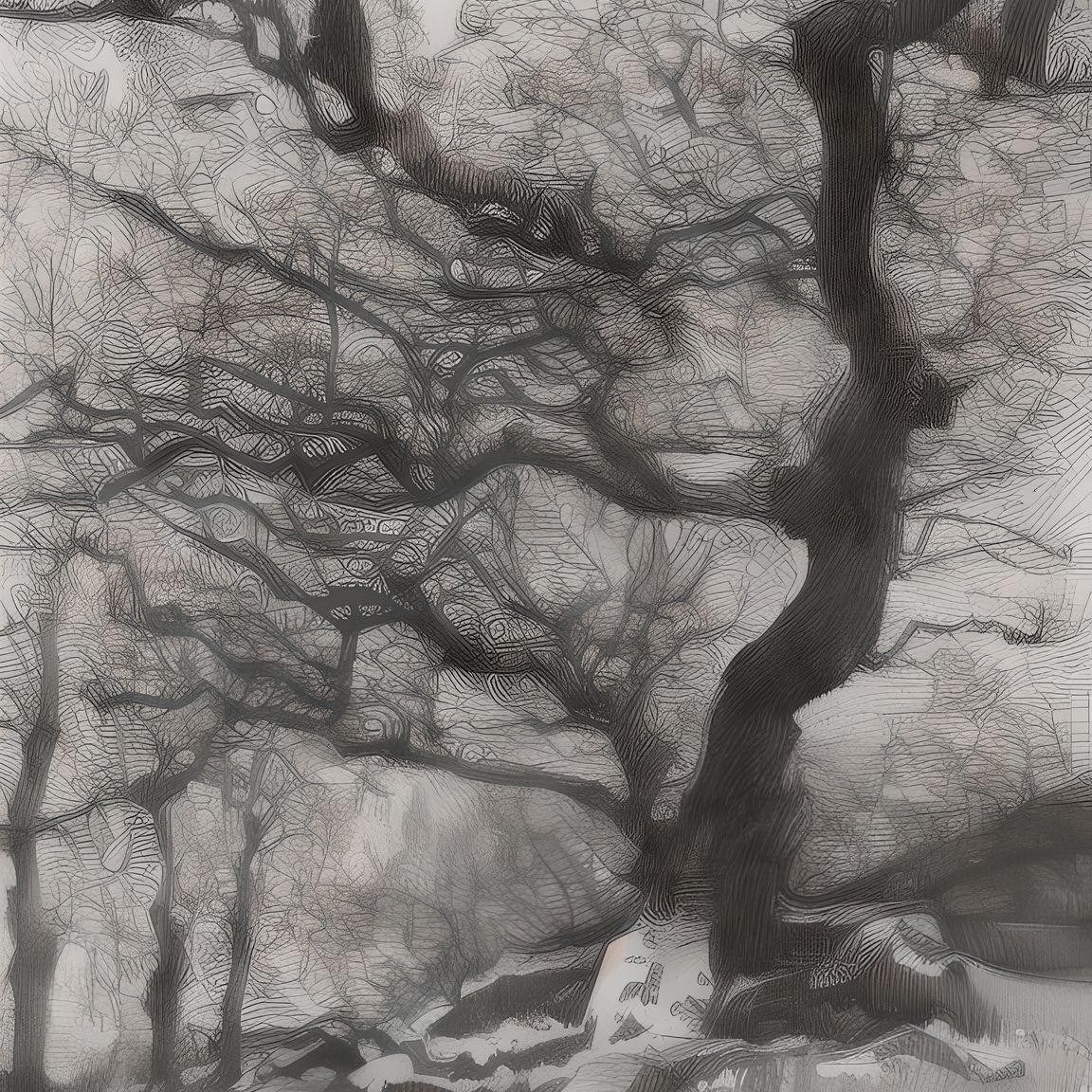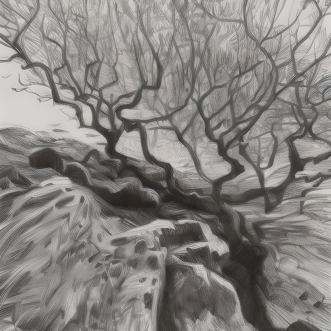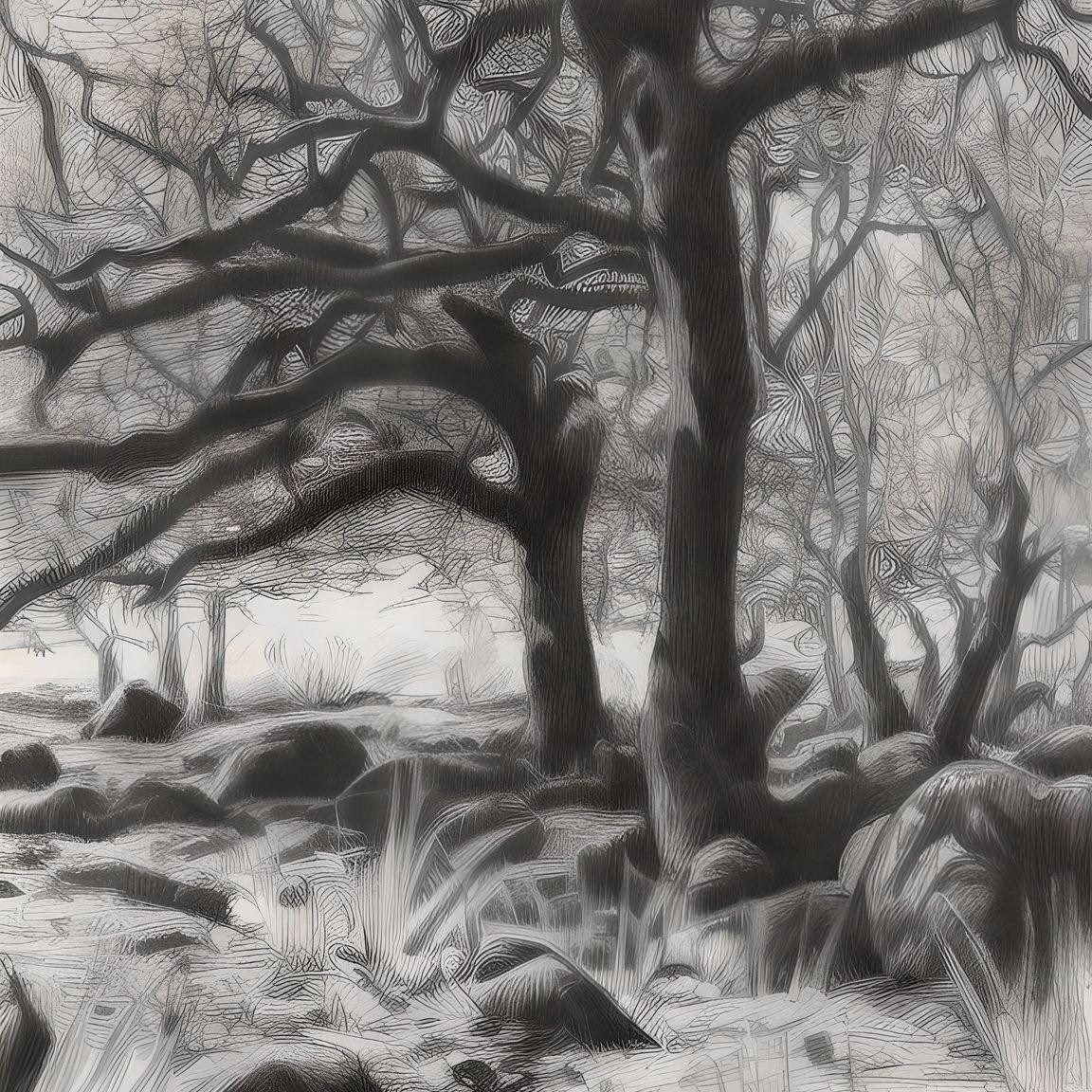 Wistman woods trees to use as reference to illustrate images in sinple colour or graphic black and white