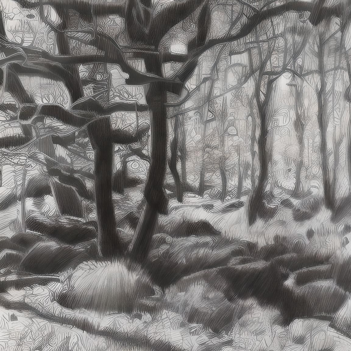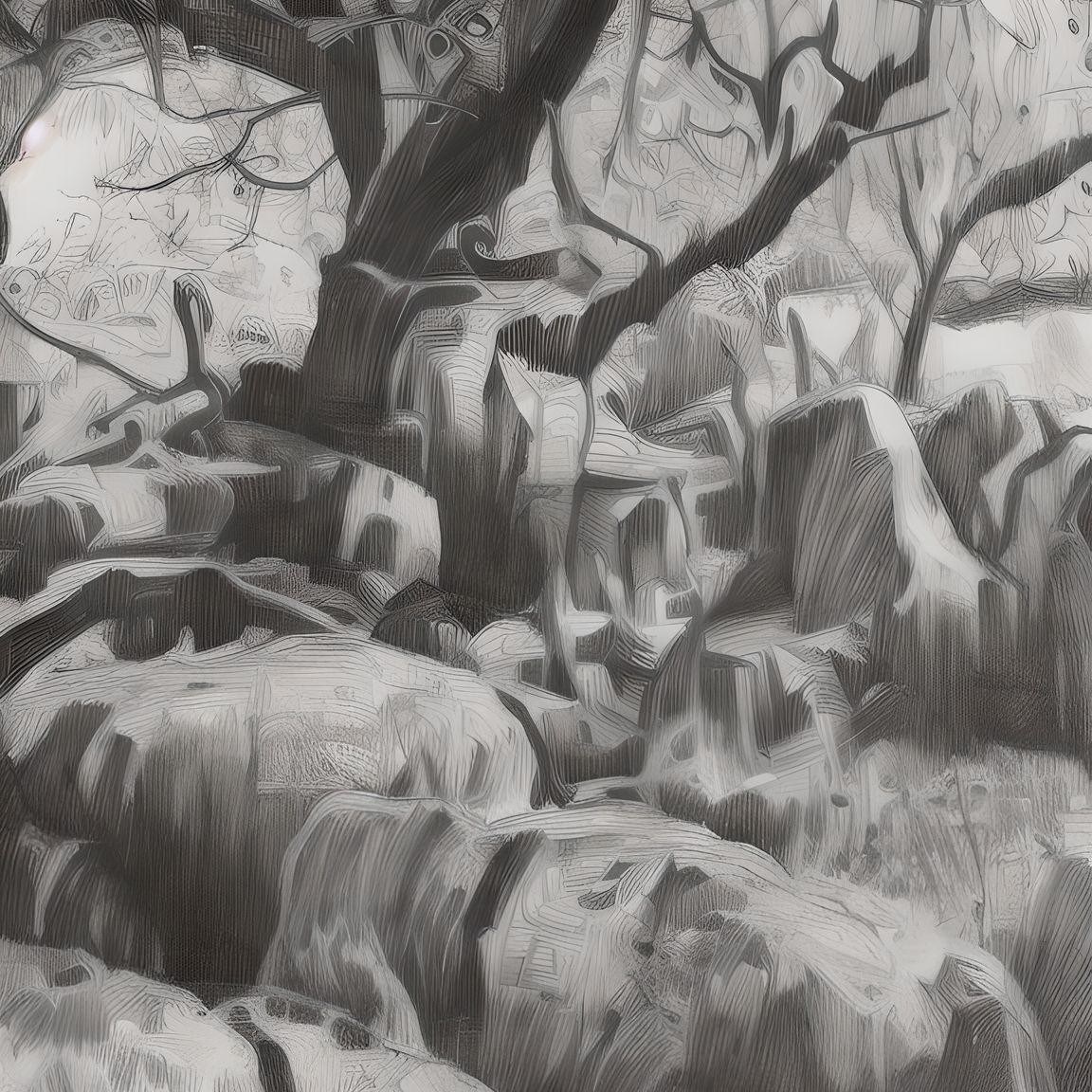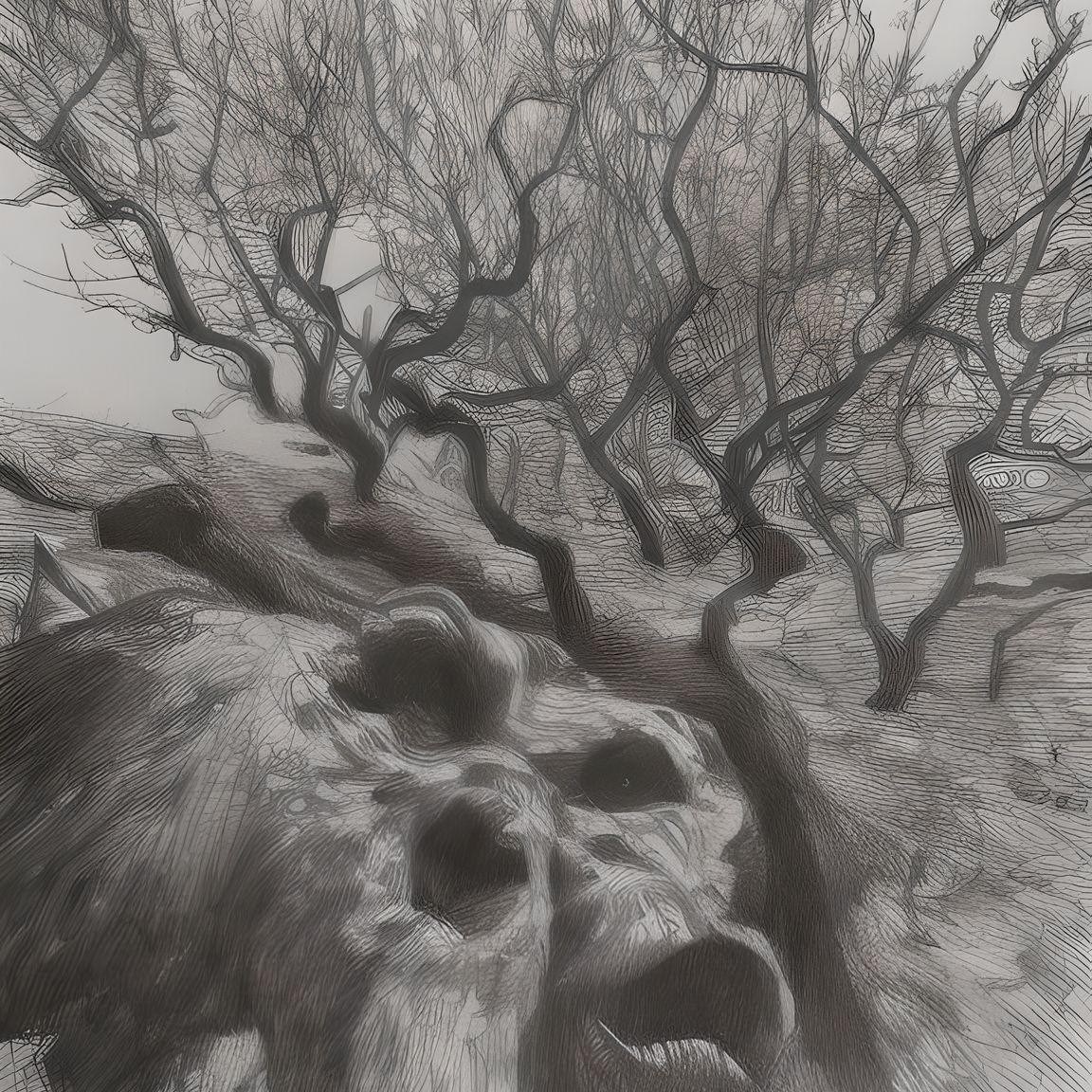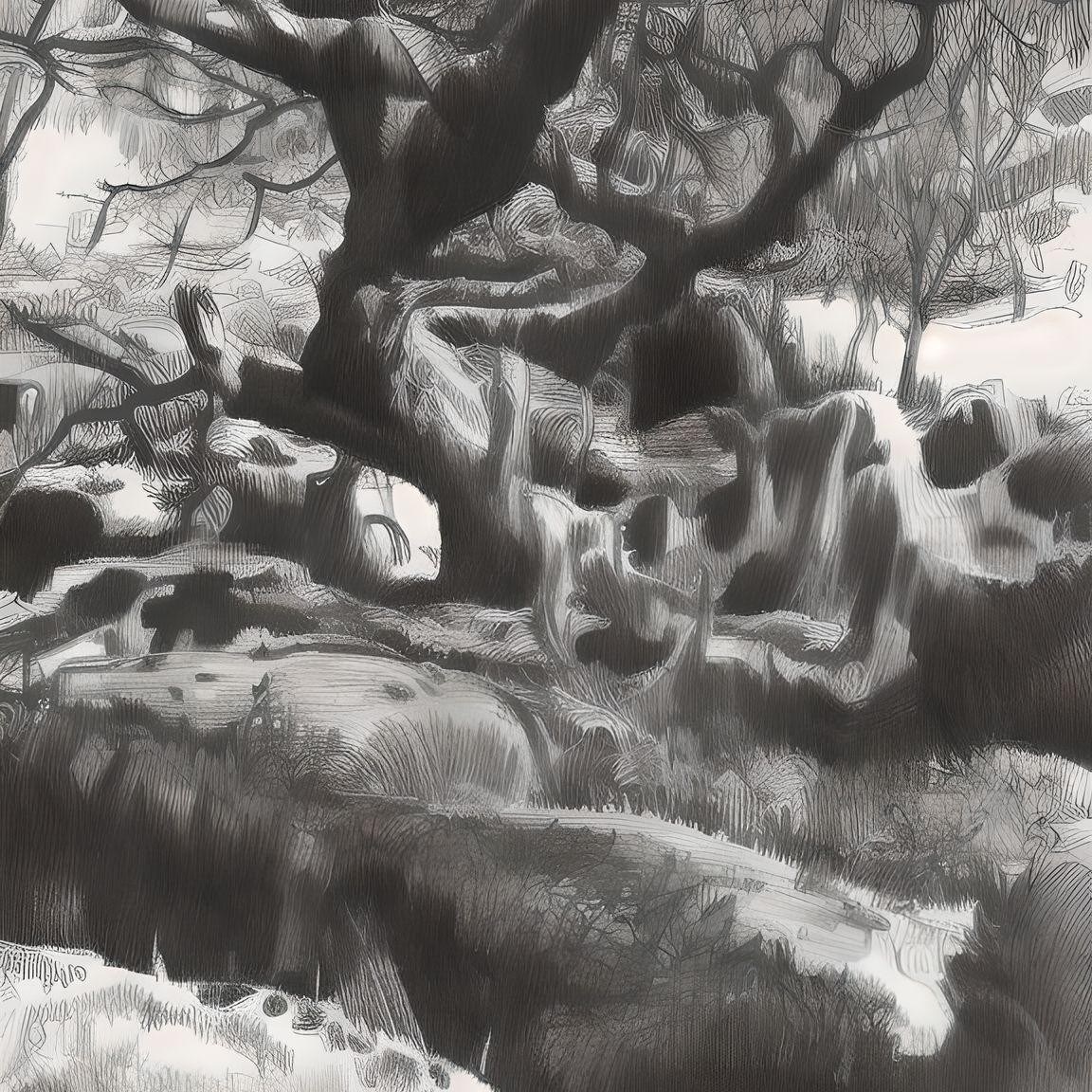 Wistman woods trees to use as reference to illustrate images in sinple colour or graphic black and white