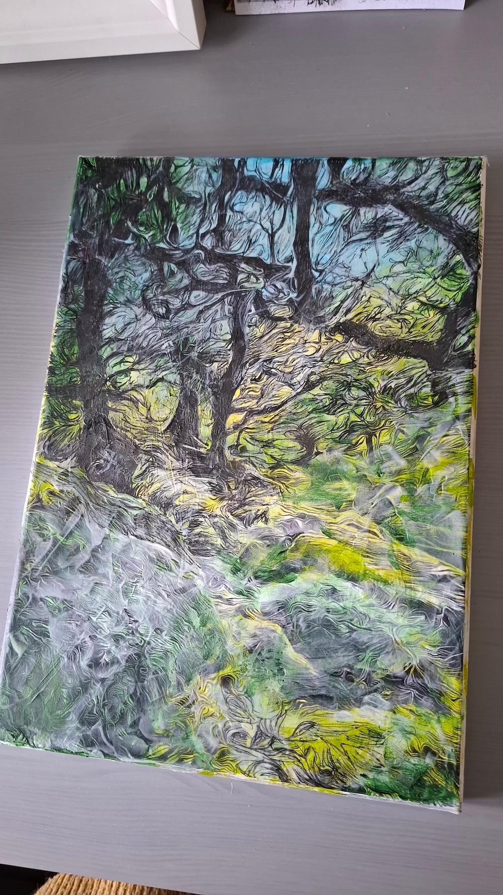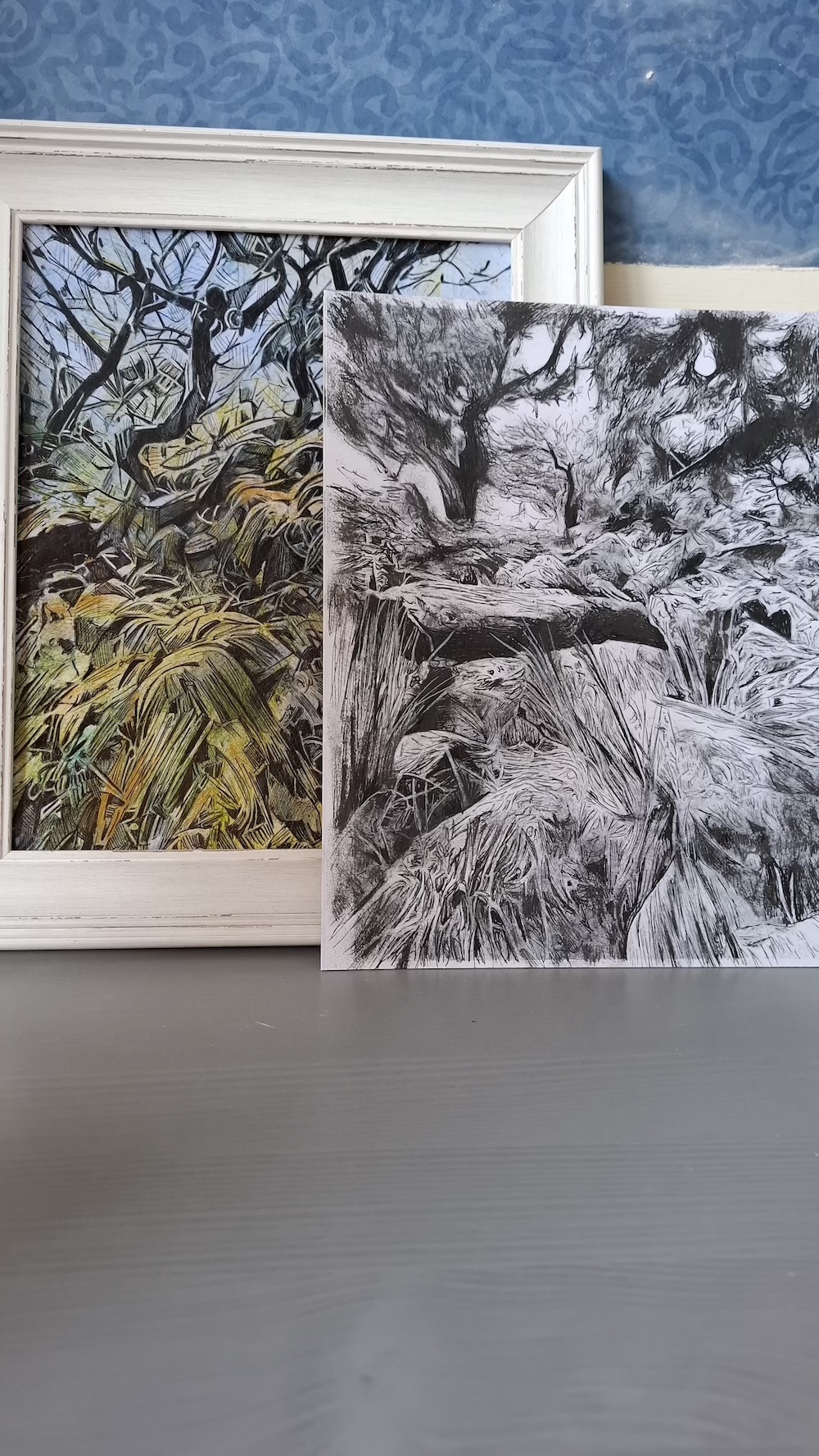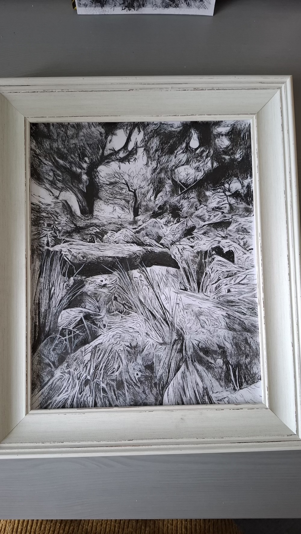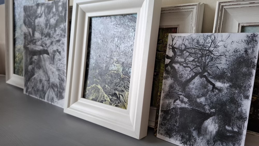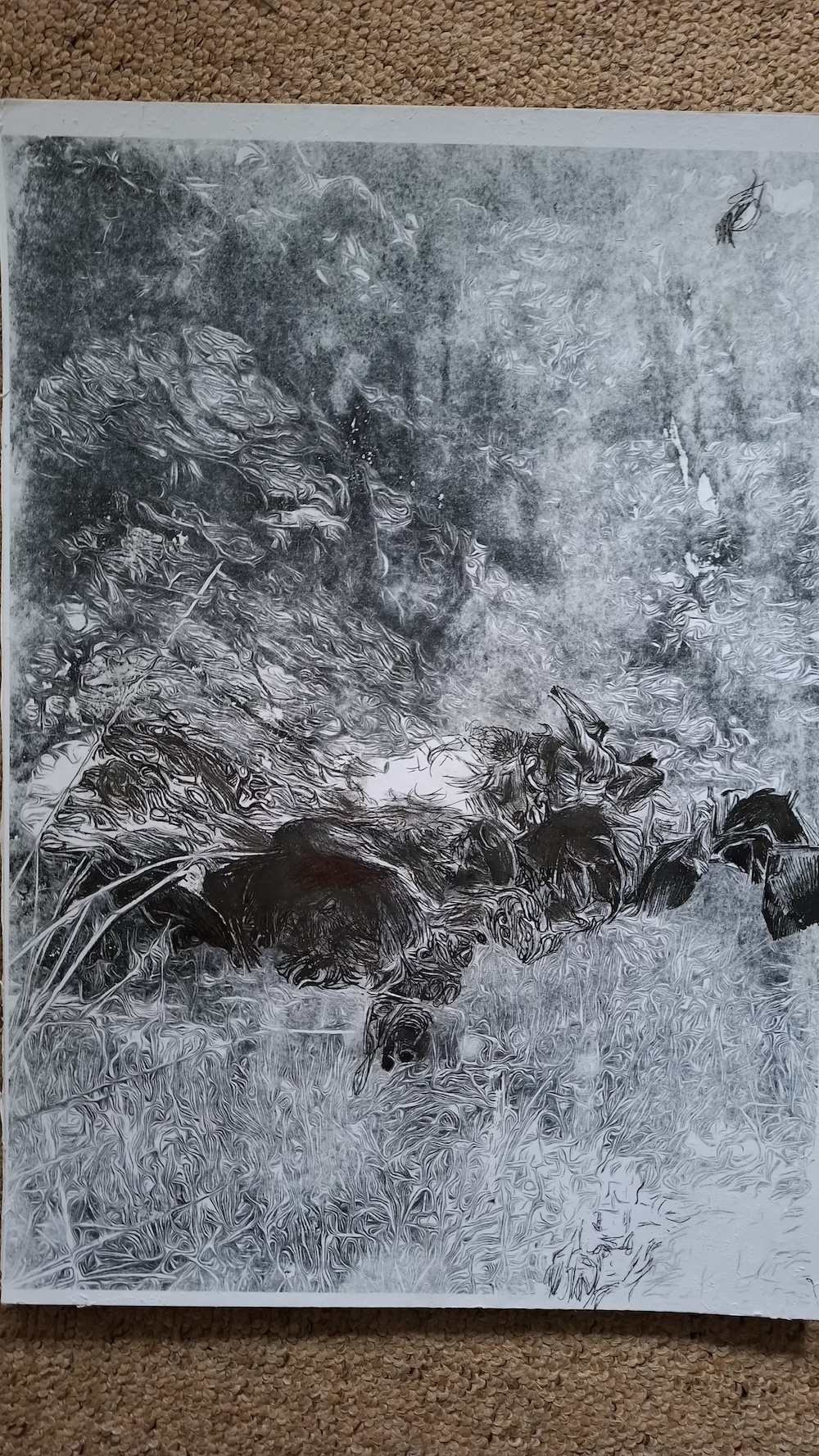 Here are various pieces i am working on around the theme of Wistman Woods. Most are black and white smaller images as sketches and ideas. These are helping me decide on what to use for reference for the final artworks.